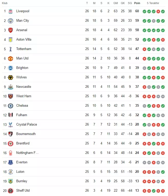 Klasemen Liga Premier